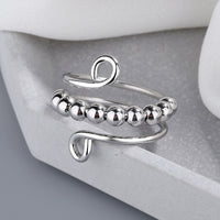 Adjustable Fidget Bead Ring - Sterling Silver Handmade Band